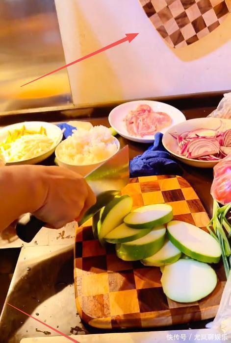 最先映入眼帘的,就是他们的案板,小巧玲珑,没有像别的明星那样选用那些花哨的材质,就只是普通的木头料。